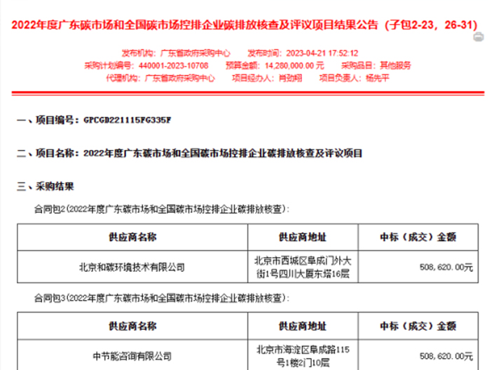 2023年4月21日,廣東省政府采購中心公布“2022年度廣東碳市場和全國碳市場控排企業(yè)碳排放核查及評議項目結(jié)果公告”,科吉成功中標第5子包??萍菄鴥?nèi)較早從事重點排放單位碳排放核查的第三方機構之一,擁有豐富的碳...