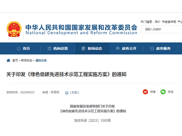 國(guó)家發(fā)展改革委等部門關(guān)于印發(fā)《綠色低碳先進(jìn)技術(shù)示范工程實(shí)施方案》的通知發(fā)改環(huán)資〔2023〕1093號(hào) 各省、自治區(qū)、直轄市、新疆生產(chǎn)建設(shè)兵團(tuán)發(fā)展改革委、科技廳、工業(yè)和信息化主管部門、財(cái)政廳(局)、自然資源...