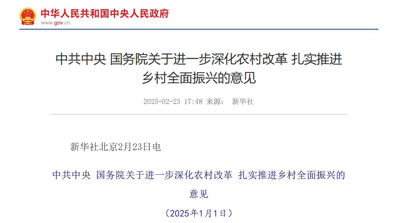 2025年中央一號文件蘊藏的“雙碳”機會2025年2月23日,《中共中央 國務(wù)院關(guān)于進一步深化農(nóng)村改革 扎實推進鄉(xiāng)村全面振興的意見》正式發(fā)布,這是自十八大以來發(fā)布的第十三份聚焦鄉(xiāng)村振興及“三農(nóng)”問題的中央一號文件...