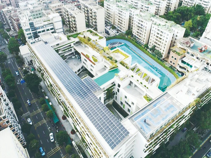 近零碳校園是深圳探索“近零碳”城市的其中一環(huán)。深圳作為國(guó)內(nèi)首批低碳試點(diǎn)城市,已率先打造不同種類的近零碳示范場(chǎng)景,通過(guò)從能源、交通、產(chǎn)業(yè)、建筑等多方面發(fā)力樹立國(guó)內(nèi)城市降碳標(biāo)桿?!鴪D為深圳福田區(qū)新洲小學(xué)俯...