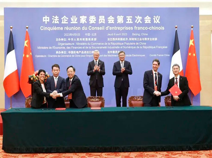 4月6日下午,國家主席習近平在人民大會堂同法國總統(tǒng)馬克龍舉行會談。會談后,兩國元首共同見證簽署農(nóng)業(yè)食品、科技、航空、民用核能、可持續(xù)發(fā)展、文化等領(lǐng)域多項合作文件。當天,多家中國企業(yè)與法國企業(yè)簽約合作,以...