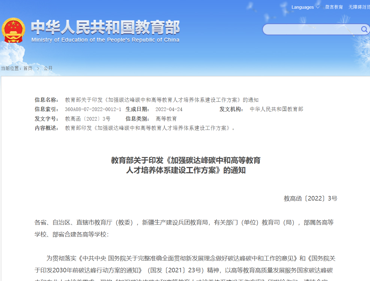 近日,教育部印發(fā)《加強(qiáng)碳達(dá)峰碳中和高等教育人才培養(yǎng)體系建設(shè)工作方案》,加強(qiáng)綠色低碳教育、打造高水平科技攻關(guān)平臺(tái)、加快緊缺人才培養(yǎng)等9項(xiàng)重點(diǎn)任務(wù),詳情如下:加強(qiáng)碳達(dá)峰碳中和高等教育人才培養(yǎng)體系建設(shè)工作方...