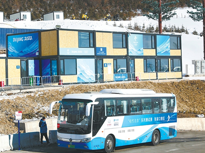 北京冬奧會賽時全部場館常規(guī)能源100%使用綠電,節(jié)能與清潔能源車輛在賽時車輛中占比超8成。圖為1月6日,在張家口市崇禮云頂滑雪公園,一名工作人員準備乘坐氫燃料大巴出行。新華社記者 楊世堯 攝“賽時全部場館常規(guī)...