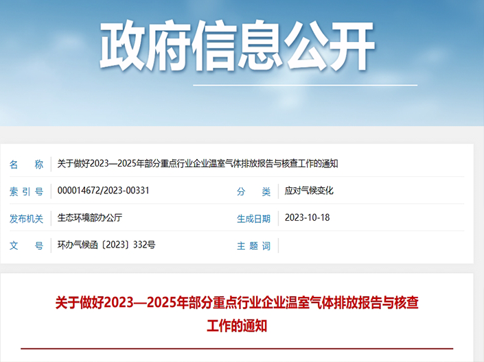 關于做好2023—2025年部分重點行業(yè)企業(yè)溫室氣體排放報告與核查工作的通知各省、自治區(qū)、直轄市生態(tài)環(huán)境廳(局),新疆生產(chǎn)建設兵團生態(tài)環(huán)境局: 為加快全國碳排放權交易市場(以下簡稱全國碳市場)建設,規(guī)范重點...